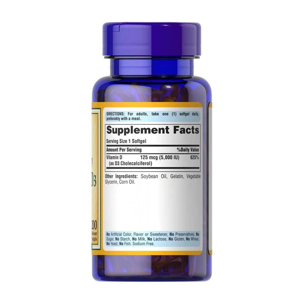 Puritan's Pride D3 125mcg 5000IU 200 Capsules (1 Box)